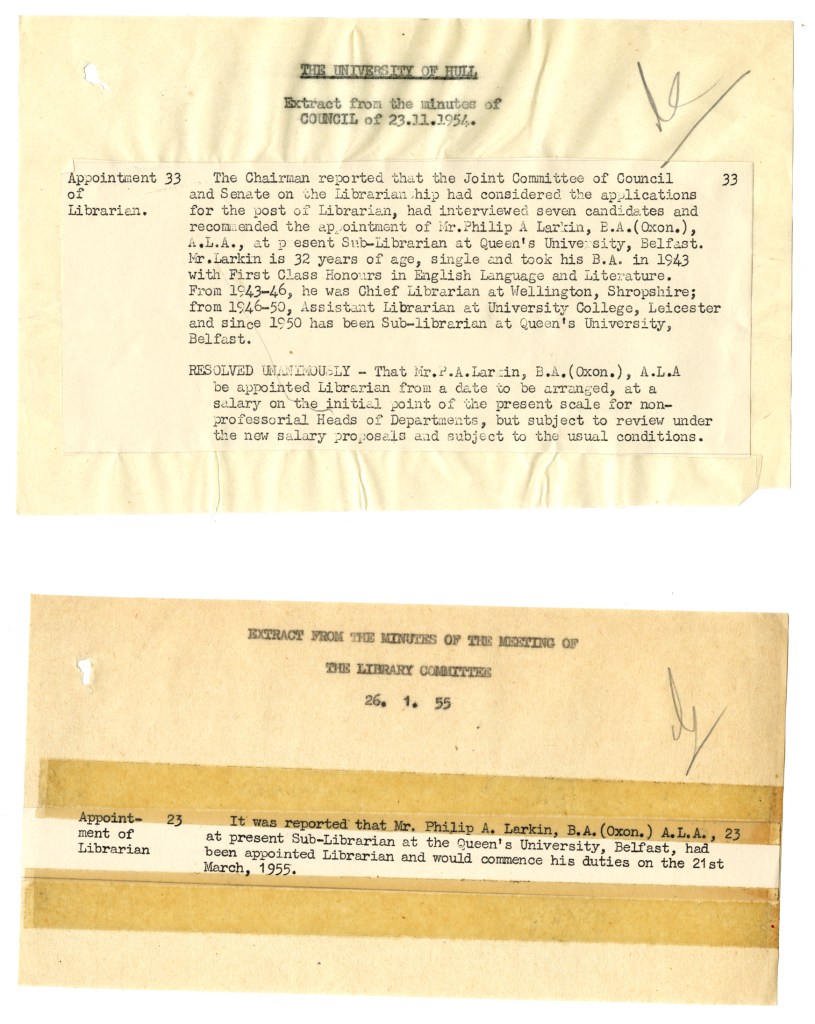 In the first two parts of our Memories of Larkin series we brought together archival material relating to Larkin’s appointment as University Librarian, pages from his notebooks along with alumni memories of encounters with him in his role as librarian or as a poet.