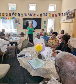 The poems I read out provoked lively discussion amongst the group and then I asked them to have a try themselves to write either a short poem or a few lines about something that made them happy. Thoughts about their families or childhood growing up in the Caribbean, anything that evoked happy memories. They all did that and then quite a few of them read out what they had written which was lovely. They wrote about parents, childhood, friends , cooking at home… lots of different topics. As people recalled events from their childhood and family through the power of their words, it was easy to see the joy it brought and the memories that were stirred.